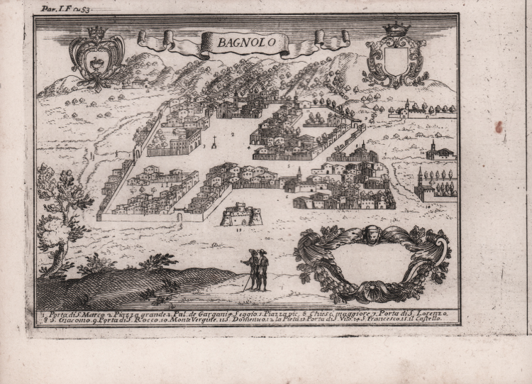 An added value and an integral part of Pacichelli's volumes are the sharp engravings depicting all the centres of the Neapolitan kingdom by Michele Luigi Muzio and the maps by Francesco Cassiano De Silva.
