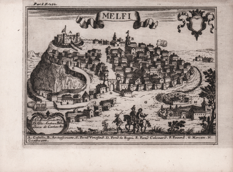 An added value and an integral part of Pacichelli's volumes are the sharp engravings depicting all the centres of the Neapolitan kingdom by Michele Luigi Muzio and the maps by Francesco Cassiano De Silva.