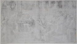 The print reproduces, in reverse, a drawing by Parmigianino preserved in the British Museum. According to Gnann, this is the first proof of the collaboration between Parmigianino and Caraglio.