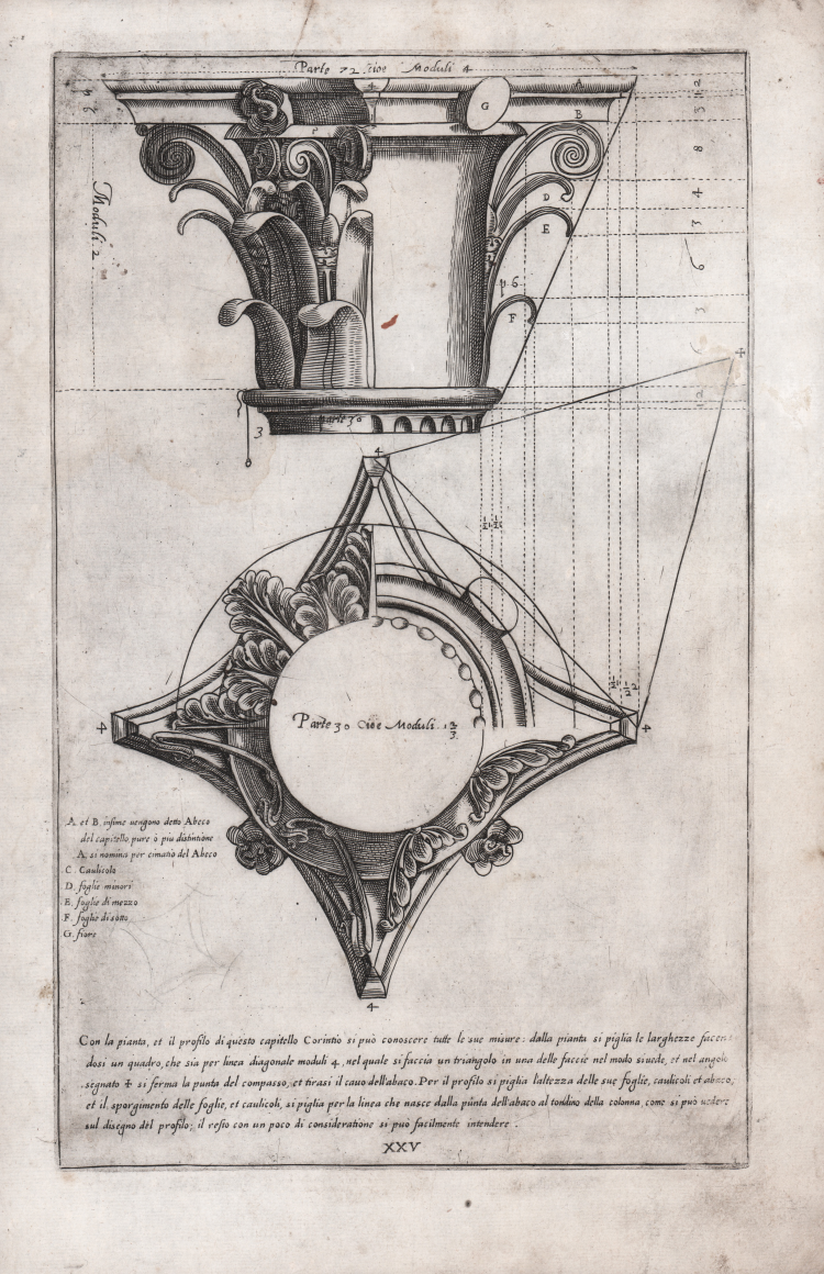 Architectural plate from the famous Regola delli cinque ordini d'architettura di m. Iacomo Barozzio da Vignola, [Rule of the Five Orders of Architecture by Giacomo Barozzio da Vignola], published in Siena by Pietro Marchett, 1635.
