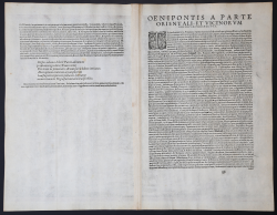 This great city atlas, edited by Georg Braun and largely engraved by Franz Hogenberg, eventually contained 546 prospects, bird-eye views and map views of cities from all over the world. Fransz Hogenberg produced the plates for the first four books, and Simon van den Neuwel (Novellanus, active since 1580) those for volumes V and VI.