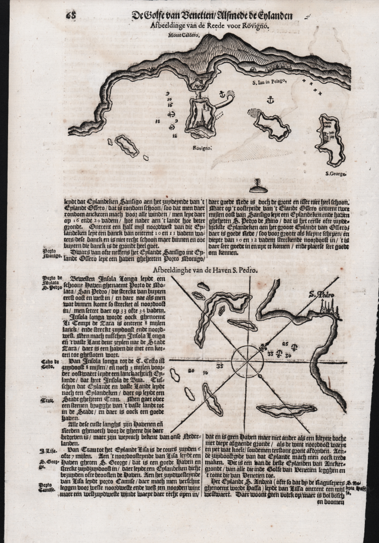 Woodcut map of the city, inserted into a text page published in the third and final volume of Jacob Aertsz Colom's nautical atlas of the Mediterranean, Der Vyerighe Colom, a Dutch edition, published in Amsterdam in 1638.