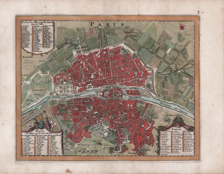 Plan of Paris taken from Les forces de l'Europe ou description des principals villes ... Paris: Chez l'Auteur, 1693-1696 famous collection consisting of eight parts in one volume, oblong folio.