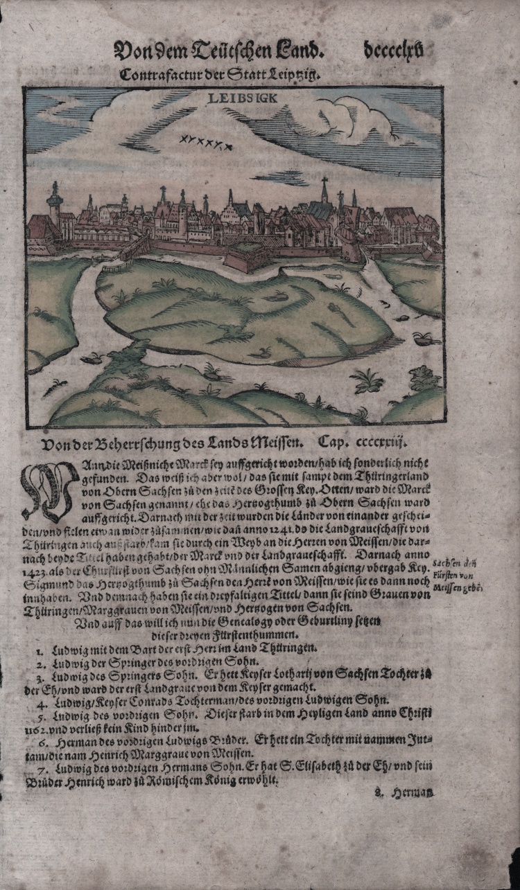 In nearly all works by Münster, his Cosmographia is given pride of place. Despite this, we still lack a detailed survey of its contents from edition to edition, along the years from 1544 to 1628, and an account of its influence on a wide range of scientific disciplines. Münster obtained the material for his book in three ways. He used all available literary sources. He tried to obtain original manuscript material for description of the countryside and of villages and towns. Finally, he obtained further material on his travels (primarily in south-west Germany, Switzerland, and Alsace). The Cosmographia contained not only the latest maps and views of many well-known cities, but included an encyclopaedic amount of details about the known - and unknown - world and undoubtedly must have been one of the most widely read books of its time.