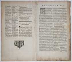 Ortelius writes: “There is almost none among the ancients who has not as it were in passing touched upon the story of the Argonavts, that is, of Iason, or of the Golden Fleece. But among those that have purposed to handle that matter, such as Cleon, Herodotus, Pisander, Dionysius Milesius, Varro Attacinus, and Epimenides, (who, as Laërtes writes, has published extensively about this in 6500 verses), there are only three [authors] remaining now that have come into our hands, namely Caius Valerius Flaccus, Orpheus and Apollonius Rhodius. In all three [of these authors], the journey outwards of those Argonauts that is, of Iason and his companions who sailed with him on the ship named Argo) is described reasonably similarly, but their return homewards differs very much from one to another in their accounts.