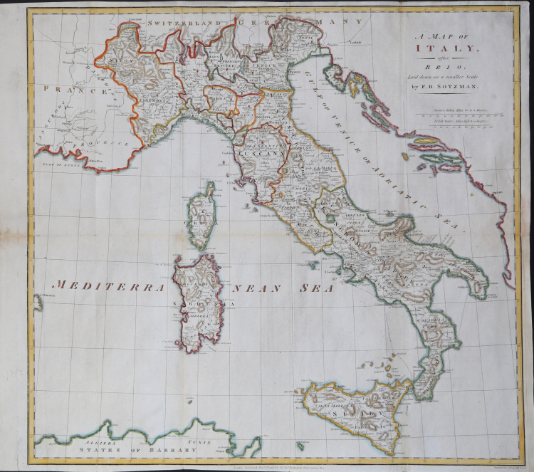 Rara carta della penisola incisa da S. J. Neele per la tipografia di George Robinson, stampa a Londra nel 1796.