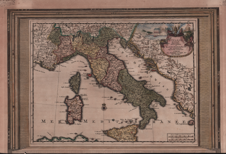 La carta è pubblicata, per la prima volta, in Le Nouveau Theatre du Monde, ou la Geo- graphie Royale, Composée De Nouvelle Cartes Tres-Exactes, Dres- sées sue les Observations de Messieurs de l'Academie des Sciences à Paris. Avec une Description Geographique Et Historique Des Quatres Parties de L'Univers, Desquelles L'Europe en detail est écrite Par Mr. Gueudeville. & les trois autres Par Mr. Ferrarius A Leide, Chez Pierre van der Aa, Marchand Libraire. MDCCXIII. Il volume si compone di 95 mappe composte due a due su ogni foglio. Il volume è dedicato a Francesco Cornaro, figlio primogenito del Doge Giovanni Cornaro (1647-1722), eletto nel 1709.