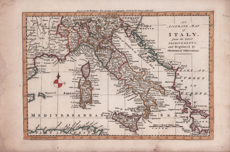 Carta geografica della penisola di Thomas Bowen, tratta da "A New Royal, Authentic and Complete System of Universal Geography", by Thomas Bankes, Edward Warren Blake, Alexander Cook & Thomas Bowen, printed for C. Cooke, No. 17, Pater-Noster Row (1789).
