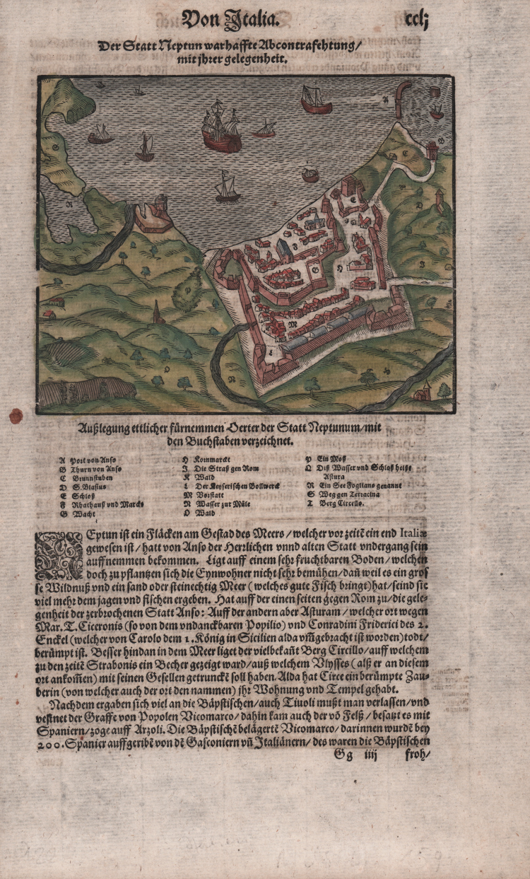 The Cosmographiae Universalis of Sebastian Münster (1488-1552), printed for the first time in Basel in 1544 by the publisher Heinrich Petri, was updated several times and increased with new maps and urban representations in its many editions until the beginning of the next century. Münster had worked to collect information in order to obtain a work that did not disappoint expectations and, after a further publication in German embellished with 910 woodblock prints, arrived in 1550 to the final edition in Latin, illustrated by 970 woodcuts.