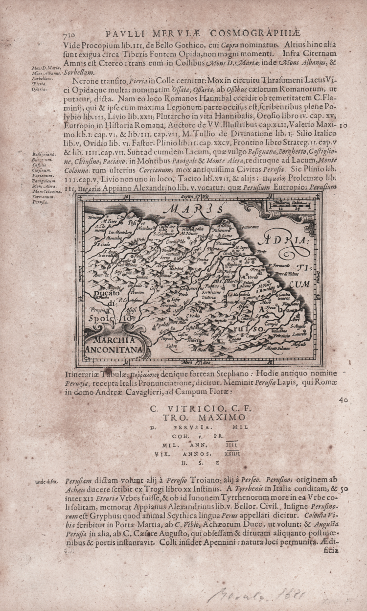 Questo esemplare, inserito in una pagina di testo, deriva dalla Cosmographia Universalis di Petrus Merula, del 1621.