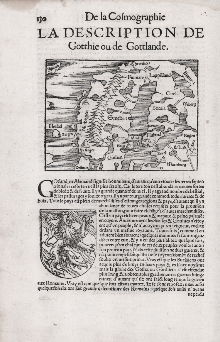 Plate taken from the Cosmographiae Universalis, Frenche edition, published with the title La cosmographie universelle, contenant la situation de toutes les parties du monde Basel, 1552 [first French edition].