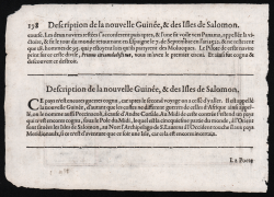 One of the earliest maps dedicated to the region, preceded only by the 1593 map by de Jode. The map covers New Guinea, the Solomon Islands (Insulae Salomonis), and part of Cape York Peninsula before its actual discovery by Willem Jansz in 1606. The map is engraved by Petrus Kaerius, for the miniature atlas Caert Thresoor, a joint project by Barent Langenes in Middelburg and Cornelis Claesz in Amsterdam. that was first published in 1598. Kaerius (Pieter van den Keere) and his brother-in-law Jodocus Hondius (Joost de Hondt) engraved the maps for this atlas; they were the foremost engravers at the time. The cartographic contents of the map is copied from Petrus Plancius' map of the Spice Islands. The toponyms and the text legend about Andrea Corsali are also copied verbatim from Petrus Plancius (Pieter Platvoet). A scale bar is given in the lower right, in old Dutch nautical Miles (Millaria Germanica) of 15 in a degree of latitude (each old Dutch nautical mile corresponding to four modern nautical miles of which there are 60 in a degree). The graduation markings and numerals at the left border of the map run from latitude 3 degrees north to latitude 25 degrees south of the equator (which itself is labeled AEQUINOTIALIS LINEA at the top of the map).