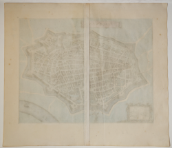 Pianta prospettica di Palmanova pubblicata da Johannes Janssonius nel 1657 circa, qui nella ristampa di Frederick de Wit edita ad Amsterdam verso il 1680.