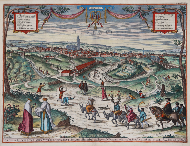 Panoramic view of Seville, after a 1593 drawing by Georg Hoefnagel, first published in the fifth volume of Civitates Orbis Terrarum, edited in 1597.