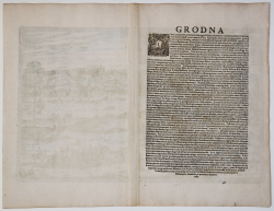 Important early view of Grodno, Belarus, from the second volume of Braun & Hogenberg's Civitatus Orbis Terrarum, the most important book of town plans and views published in the 16th Century.