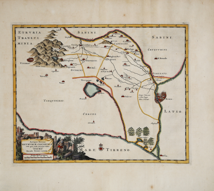 Carta geografica della Tuscia meridionale, tratta dal “Thesaurus Antiquitatum et Historiarum Italiae, Neapolis, Siciliae Sardiniaae, Corsicae e Melitae”, monumentale opera di Georgius Graevius pubblicata nel primo quarto del XVIII secolo.