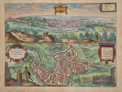 The first volume of the Civitates Orbis Terrarum was published in Cologne in 1572. The sixth and the final volume appeared in 1617. This great city atlas, edited by Georg Braun and largely engraved by Franz Hogenberg, eventually contained 546 prospects, bird-eye views and map views of cities from all over the world. Fransz Hogenberg produced the plates for the first four books, and Simon van den Neuwel (Novellanus, active since 1580) those for volumes V and VI.