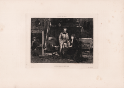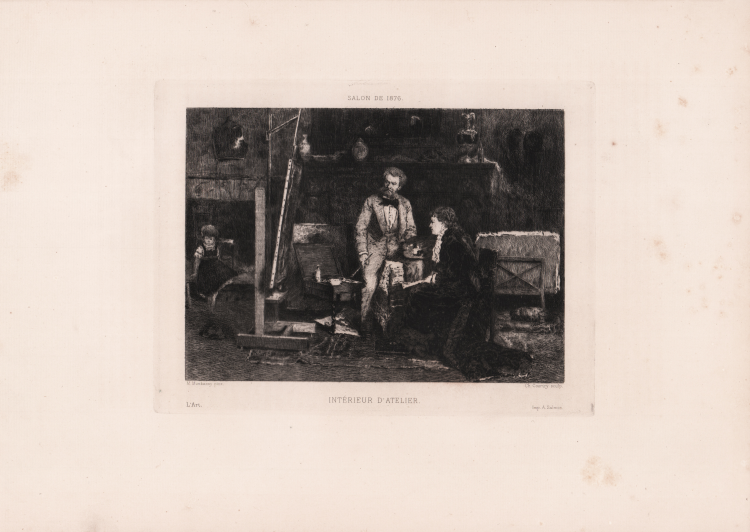 Etching and drypoint, lettered above image: 'Salon de 1876' and below, with production detail: 'M Munkacsy pinx. - Ch. Courtry sculp.' and 'Imp. a. Salmon', 'L'Art', and title.
