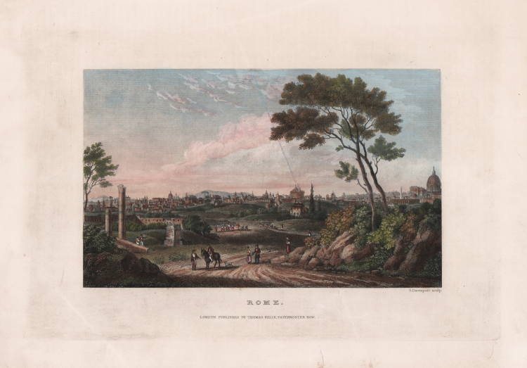 Bella veduta panoramica di Roma, pubblicata a Londra da Thomas Kelly a Paternoster Row e incisa da S. Davenport.