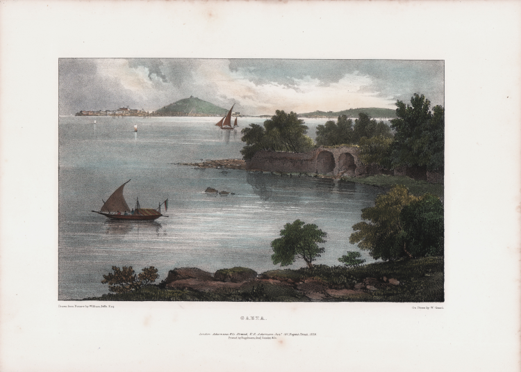 Bella e rara veduta disegnata da William Jeffs, e pubblicata nel Recollections of Italy in Fifteen Select Views drawn from nature ... in the years 1826 and 1827 stampato a Londra Ackermann and Co. nel 1829.
