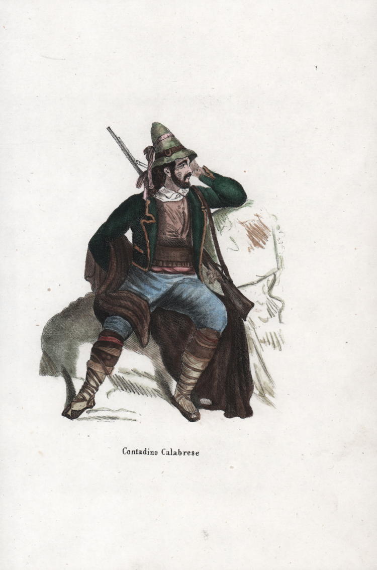 Costume popolare tratto da "Usi e costumi sociali, politici e religiosi di tutti i popoli del mondo da documenti autentici e dai viaggi migliori e piu recenti …" di Nicolas Dally. Stampata a Torino dallo Stabilimento tipografico Fontana, nel 1844.