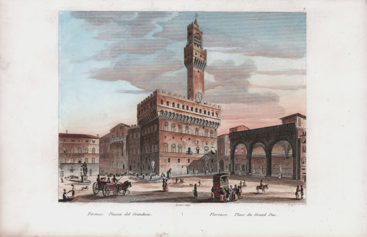 Veduta tratta dal celebre L'Italie, la Sicile, les Iles Éoliennes, l'Ile d'Elbe, la Sardaigne, Malte, l'Ile de Calypso etc. D'après les inspirations, les recherches et les travaux de M. M. le Vicomte de Chateaubriand, De Lamartine, Raoul-Rochette, le Comte de Forbin, Piranesi, Mazzara, et de Napoléon, Denon, Saint-Non, Lord Byron, Goethe, Visconti, Cicognara, Lanzi, de Bonstetten, Swinburne, etc. Sites, Monumens, Scènes et Costumes, d'après M.me Haudebourt-Lescot, MM. Horace-Vernet, Granet, Isabey, Ciceri, Mazzara, le Major Light, le Cap. Batty, Cooke, Gell et Gandy, Pinelli, Ferrari, Zucoli, et beaucoup d'autres artistes italiens. Recueillis et publiés par Audot Père, Membre de la Société de Géographie, edito a Parigi tra il 1834 ed il 1837 e ristampato a Torino [Giuseppe Pomba e Ca, 1834-1838].