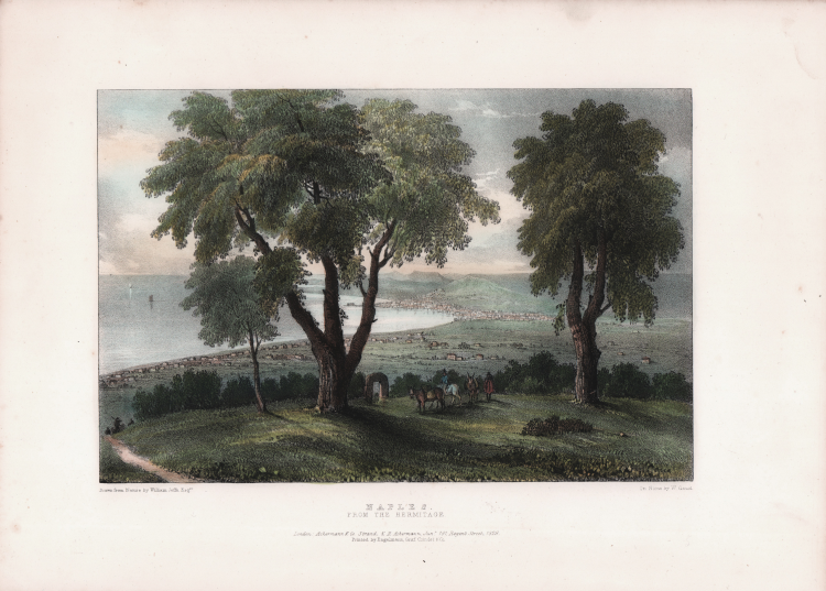 Bella e rara veduta disegnata da William Jeffs, e pubblicata nel Recollections of Italy in Fifteen Select Views drawn from nature ... in the years 1826 and 1827 stampato a Londra Ackermann and Co. nel 1829.