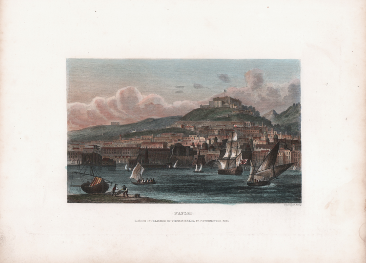 Bella veduta di Napoli dal mare incisa da Samuel Davenport. Pubblicata a Londra da Thomas Kelly, 17 Paternoster Row.