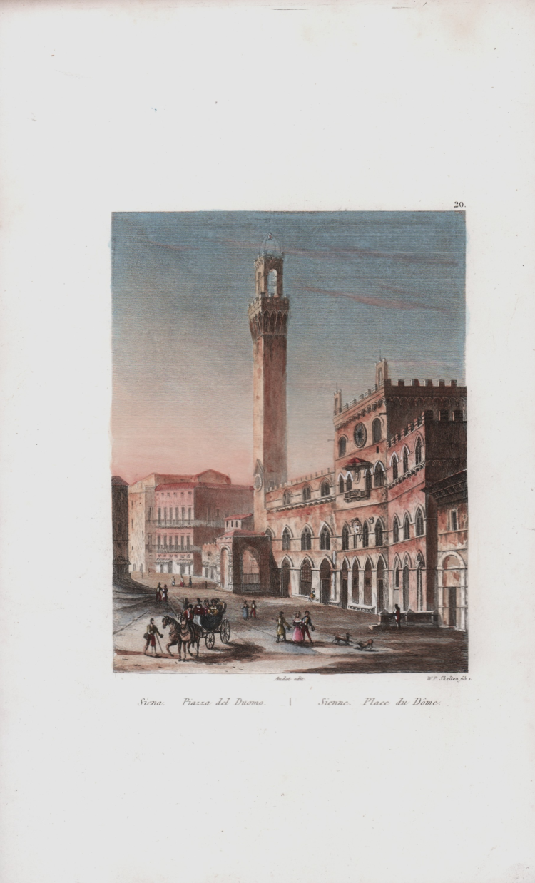 Veduta tratta dal celebre L'Italie, la Sicile, les Iles Éoliennes, l'Ile d'Elbe, la Sardaigne, Malte, l'Ile de Calypso etc. D'après les inspirations, les recherches et les travaux de M. M. le Vicomte de Chateaubriand, De Lamartine, Raoul-Rochette, le Comte de Forbin, Piranesi, Mazzara, et de Napoléon, Denon, Saint-Non, Lord Byron, Goethe, Visconti, Cicognara, Lanzi, de Bonstetten, Swinburne, etc. Sites, Monumens, Scènes et Costumes, d'après M.me Haudebourt-Lescot, MM. Horace-Vernet, Granet, Isabey, Ciceri, Mazzara, le Major Light, le Cap. Batty, Cooke, Gell et Gandy, Pinelli, Ferrari, Zucoli, et beaucoup d'autres artistes italiens. Recueillis et publiés par Audot Père, Membre de la Société de Géographie, edito a Parigi tra il 1834 ed il 1837 e ristampato a Torino [Giuseppe Pomba e Ca, 1834-1838].