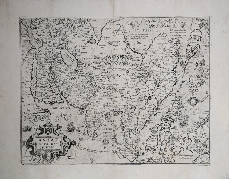 La carta dell’Asia incisa da Giovan Battista Mazza per l’editore Donato Rascicotti è parte della rarissima serie raffigurante i quattro continenti. È una copia puntuale della mappa pubblicata da Abraham Ortelius nel Theatrum Orbis Terrarum (1570), a sua volta basata sul modello di Giacomo Gastaldi, poi aggiornata nel 1574. Data l’estrema rarità della carta, è poco nota alla letteratura.