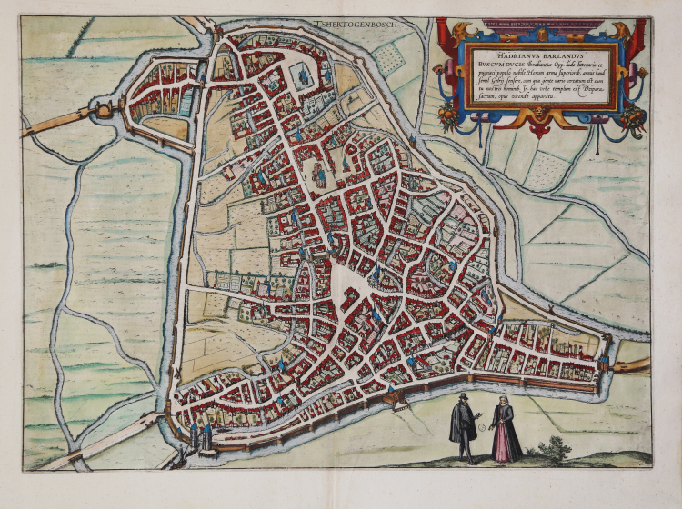 Celebre veduta della città di 's-Hertogenbosch (indicata in latino come Buscum Ducis) pubblicata nell'atlante delle città Civitates Orbis Terrarum di Georg Braun e Frans Hogenberg. Il testo che compare sulla mappa è spesso attribuito o cita l'umanista Hadrianus Barlandus (Adriano di Baarland), il quale descrisse la città come un centro rinomato per le sue scuole e la sua forza militare ("Buscum ducis Brabantiae oppidum ludo literario et pugnaci milite..."). Pubblicata nel primo volume del Civitates Orbis Terrarum, edito nel 1572.