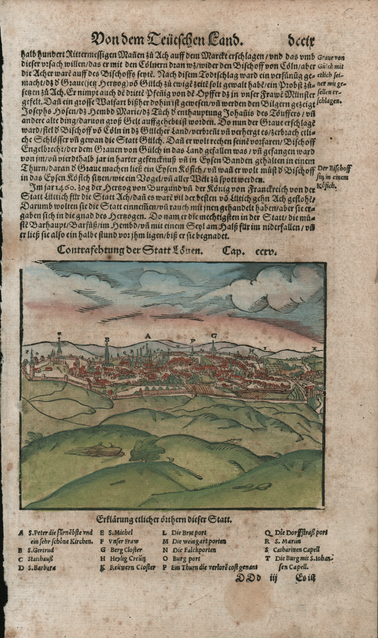 La Cosmographiae Universalis di Sebastian Münster (1488-1552), stampata per la prima volta Basilea nel 1544 dall’editore Heinrich Petri, venne più volte aggiornata e aumentata di nuove carte geografiche e rappresentazioni urbane nelle sue numerose edizioni che arrivano all’inizio del secolo successivo. Münster aveva lavorato a raccogliere informazioni al fine di ottenere un'opera che non deludesse le aspettative e, dopo un'ulteriore pubblicazione in tedesco abbellita da 910 stampe su legno, giunse nel 1550 all'edizione definitiva in latino, illustrata da 970 silografie.