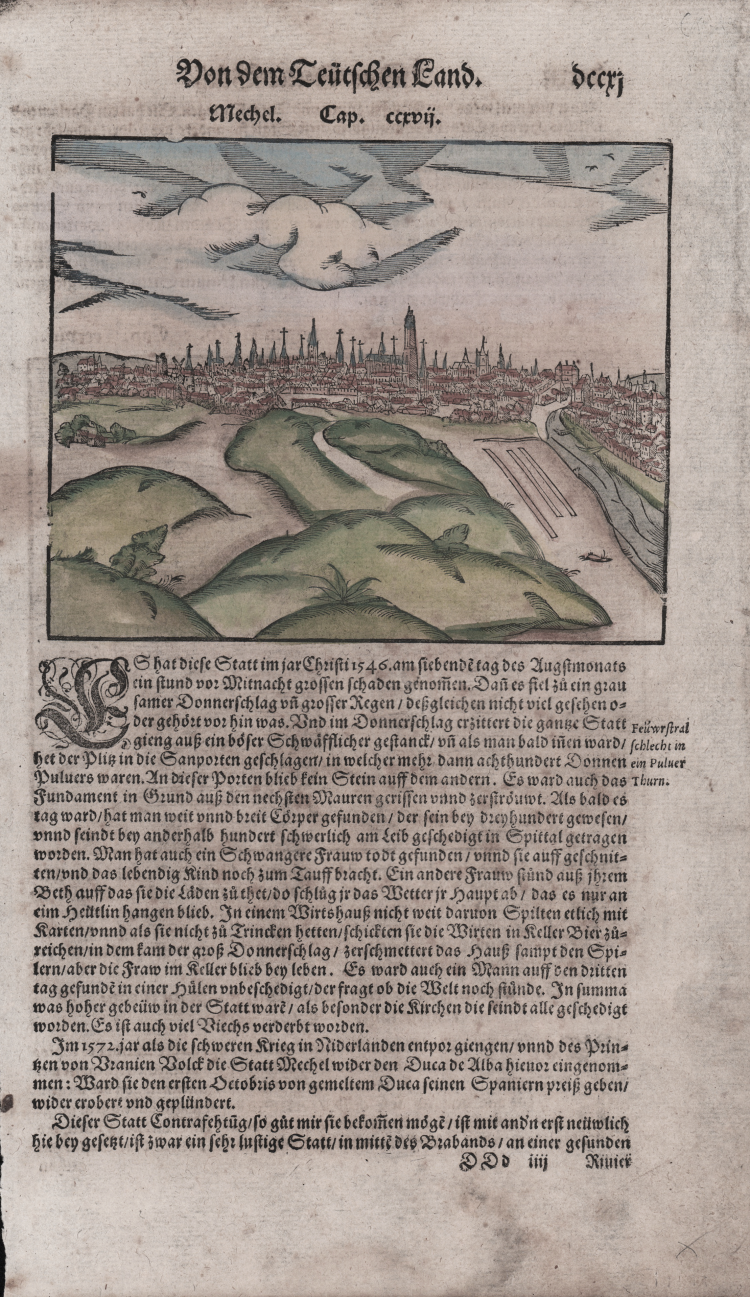 La Cosmographiae Universalis di Sebastian Münster (1488-1552), stampata per la prima volta Basilea nel 1544 dall’editore Heinrich Petri, venne più volte aggiornata e aumentata di nuove carte geografiche e rappresentazioni urbane nelle sue numerose edizioni che arrivano all’inizio del secolo successivo. Münster aveva lavorato a raccogliere informazioni al fine di ottenere un'opera che non deludesse le aspettative e, dopo un'ulteriore pubblicazione in tedesco abbellita da 910 stampe su legno, giunse nel 1550 all'edizione definitiva in latino, illustrata da 970 silografie.
