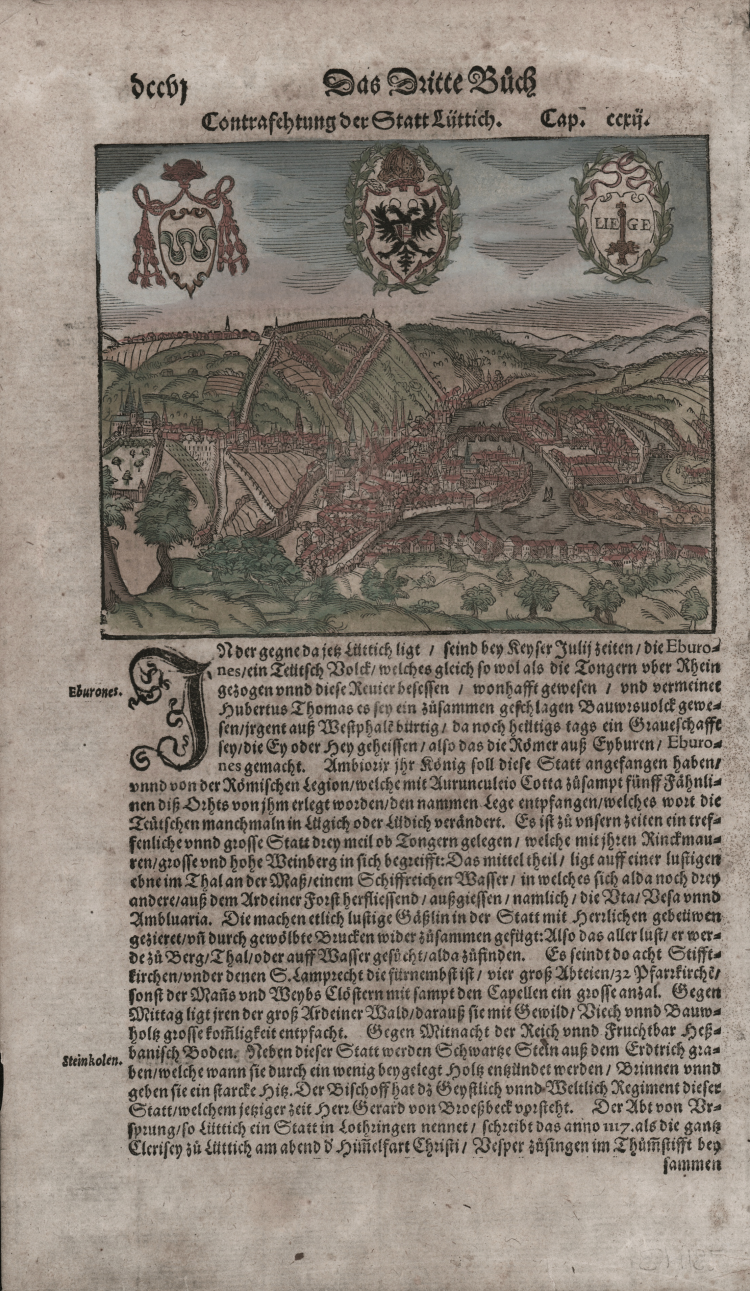 La Cosmographiae Universalis di Sebastian Münster (1488-1552), stampata per la prima volta Basilea nel 1544 dall’editore Heinrich Petri, venne più volte aggiornata e aumentata di nuove carte geografiche e rappresentazioni urbane nelle sue numerose edizioni che arrivano all’inizio del secolo successivo. Münster aveva lavorato a raccogliere informazioni al fine di ottenere un'opera che non deludesse le aspettative e, dopo un'ulteriore pubblicazione in tedesco abbellita da 910 stampe su legno, giunse nel 1550 all'edizione definitiva in latino, illustrata da 970 silografie.