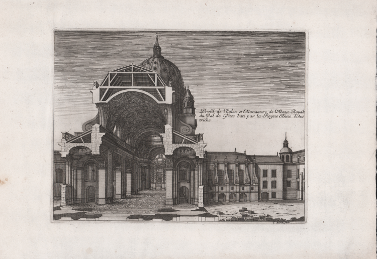 Tavola architettonica tratta da Recueil des plans, profils, et élévations de plusieurs palais, chasteaux, églises, sépultures, grotes et hostels bâtis dans Paris, la serie denominate anche “Le Petit Marot”, pubblicata a Parigi intorno al 1659.