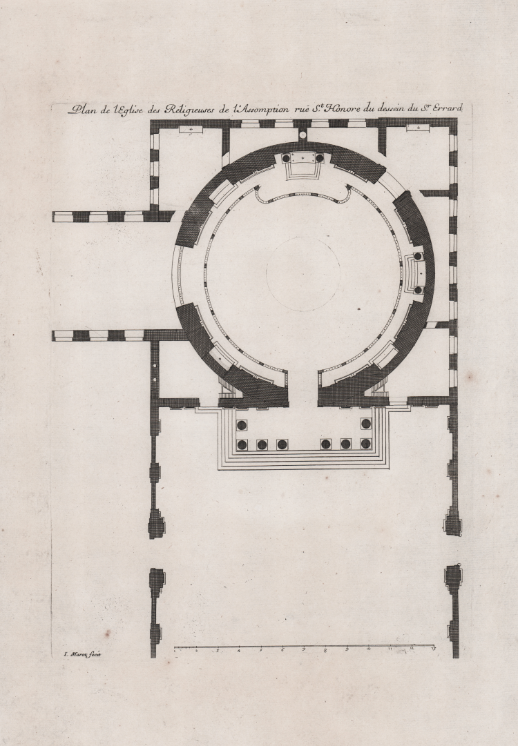 Tavola architettonica tratta da Recueil des plans, profils, et élévations de plusieurs palais, chasteaux, églises, sépultures, grotes et hostels bâtis dans Paris, la serie denominate anche “Le Petit Marot”, pubblicata a Parigi intorno al 1659.