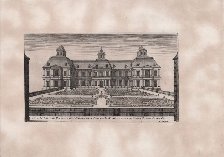 Tavola architettonica tratta da Recueil des plans, profils, et élévations de plusieurs palais, chasteaux, églises, sépultures, grotes et hostels bâtis dans Paris, la serie denominate anche “Le Petit Marot”, pubblicata a Parigi intorno al 1659.