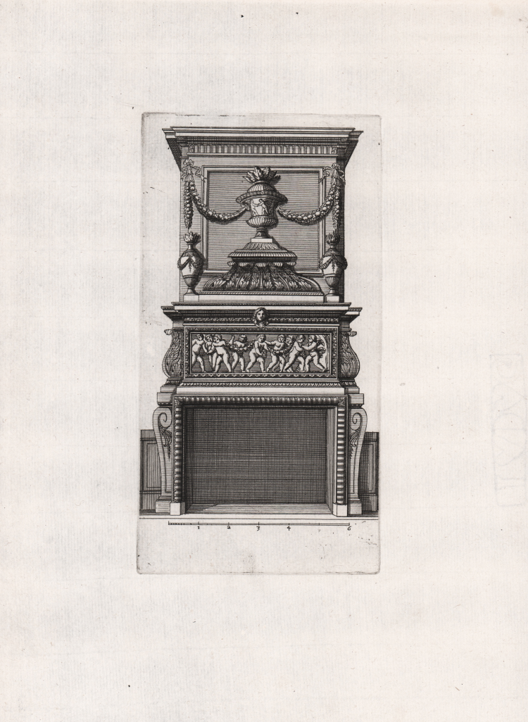 Tavola architettonica tratta da Recueil des plans, profils, et élévations de plusieurs palais, chasteaux, églises, sépultures, grotes et hostels bâtis dans Paris, la serie denominate anche “Le Petit Marot”, pubblicata a Parigi intorno al 1659.