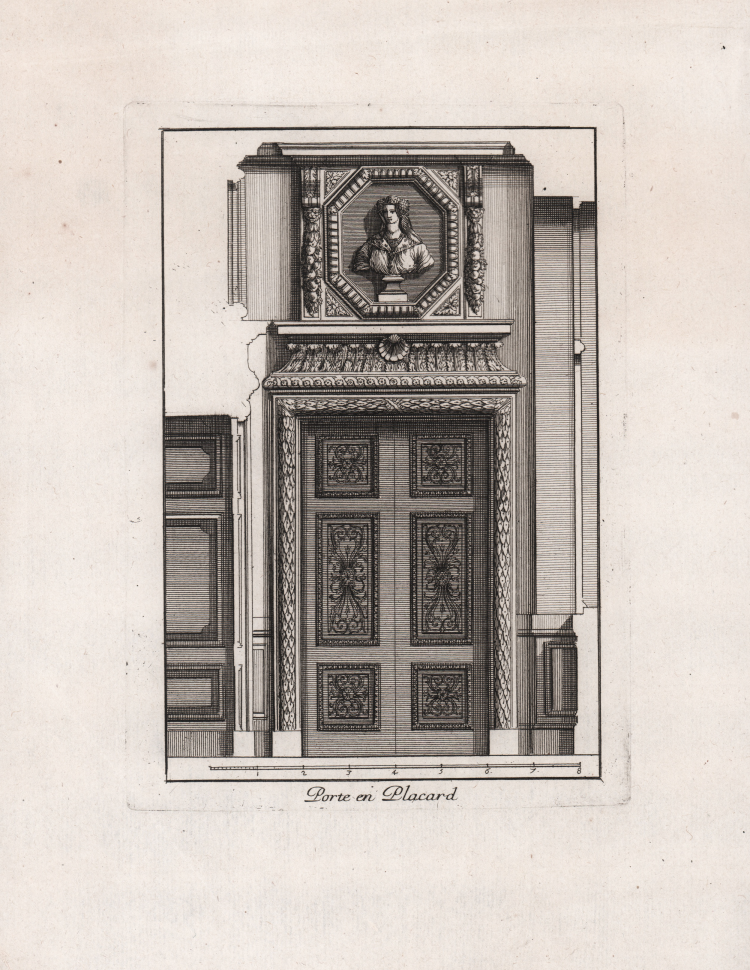 Tavola architettonica tratta da Recueil des plans, profils, et élévations de plusieurs palais, chasteaux, églises, sépultures, grotes et hostels bâtis dans Paris, la serie denominate anche “Le Petit Marot”, pubblicata a Parigi intorno al 1659.