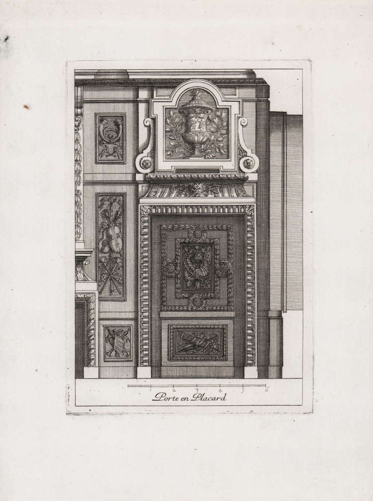 Tavola architettonica tratta da Recueil des plans, profils, et élévations de plusieurs palais, chasteaux, églises, sépultures, grotes et hostels bâtis dans Paris, la serie denominate anche “Le Petit Marot”, pubblicata a Parigi intorno al 1659.