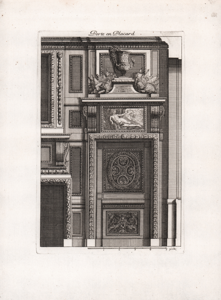 Tavola architettonica tratta da Recueil des plans, profils, et élévations de plusieurs palais, chasteaux, églises, sépultures, grotes et hostels bâtis dans Paris, la serie denominate anche “Le Petit Marot”, pubblicata a Parigi intorno al 1659.