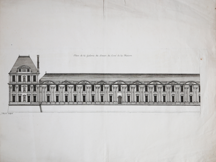 Tavola architettonica tratta da Recueil des plans, profils, et élévations de plusieurs palais, chasteaux, églises, sépultures, grotes et hostels bâtis dans Paris, la serie denominate anche “Le Petit Marot”, pubblicata a Parigi intorno al 1659.