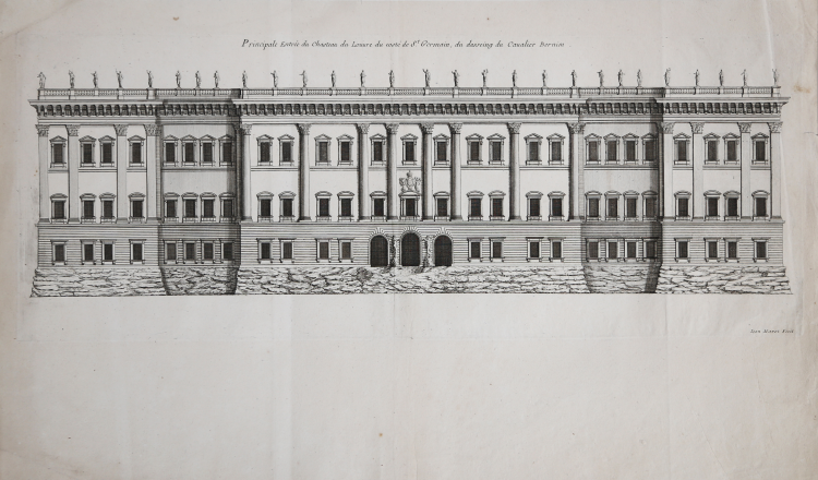 Tavola architettonica tratta da Recueil des plans, profils, et élévations de plusieurs palais, chasteaux, églises, sépultures, grotes et hostels bâtis dans Paris, la serie denominate anche “Le Petit Marot”, pubblicata a Parigi intorno al 1659.