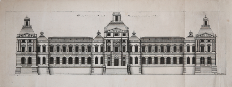 Tavola architettonica tratta da Recueil des plans, profils, et élévations de plusieurs palais, chasteaux, églises, sépultures, grotes et hostels bâtis dans Paris, la serie denominate anche “Le Petit Marot”, pubblicata a Parigi intorno al 1659.