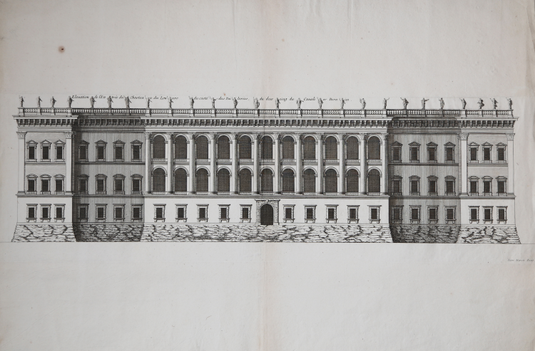 Tavola architettonica tratta da Recueil des plans, profils, et élévations de plusieurs palais, chasteaux, églises, sépultures, grotes et hostels bâtis dans Paris, la serie denominate anche “Le Petit Marot”, pubblicata a Parigi intorno al 1659.