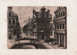 La tavola appartiene a una serie di 28 piccole vedute prospettiche architettoniche incise da Johannes van Doetecum da disegni di Hans Vredeman de Vries. La prima edizione della serie, pubblicata ad Anversa da Hieronymus Cock nel 1562, non ha un frontespizio con un titolo, ma si apre con la pagina di dedica al cardinale Antoine Perrenot de Granvelle.