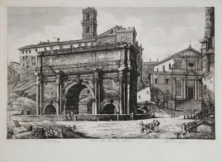 Tavola tratta dalla serie delle Antichità Romane, serie composta di 101 tavole, che viene realizzata con il ricavato della e vendita dei rami della Raccolta di cinquanta principali vedute di antichità tratte da scavi fatti in Roma in questi ultimi tempi divise in 40 vedute edita nel 1817.