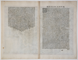 Superba veduta a volo d'uccello di Milano, inserita nel primo volume del Civitates Orbis Terrarum, il primo atlante devoto esclusivamente alle piante e vedute delle principali città del mondo, stampato in sei volumi tra il 1572 ed il 1617, ebbe grande fortuna e diffusione, tanto che ne furono stampate diverse edizioni tradotte in latino, tedesco e francese. La mappa è contenuta nel primo dei sei volumi dell'opera, pubblicato nel 1572, ed è basata sulla pianta del 1560 di Antonio Lafreri.
