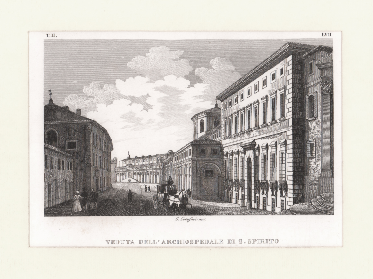 Veduta tratta dall’opera “Roma nell’anno MDCCCXXXVIII descritta da Antonio Nibby…”, Roma, Tipografia delle Belle Arti, in quattro volumi (1838-41) – i primi due dedicati allo studio topografico e archeologico della Roma antica, gli altri a quella moderna. L’opera nelle linee generali, pur con i successivi progressi e scoperte archeologiche, può ritenersi quanto di meglio sia stato scritto su Roma nella prima metà del XIX secolo.