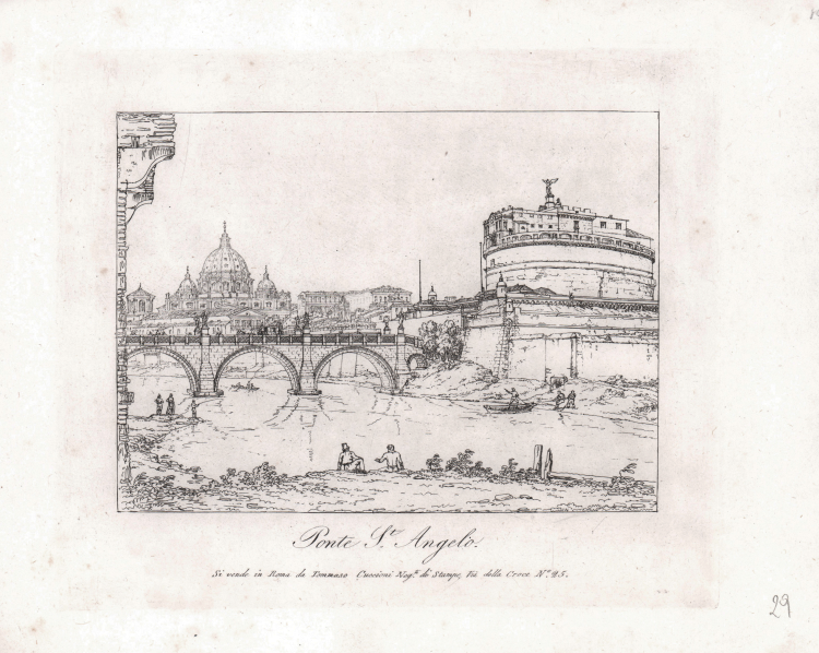 Veduta finemente incisa ad acquaforte, eseguita con la tecnica di delineato, impressa su carta coeva, in ottimo stato di conservazione.